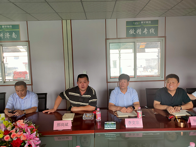 2020年8月10日,濟(jì)南市公安局物流寄遞保衛(wèi)支隊黨委書記、支隊長單金文、政委王鋒、紀(jì)委書記樊延海等一行到振宇物流慰問指導(dǎo)工作,濟(jì)南市物流發(fā)展促進(jìn)會會長邢尚斌、副會長李文宗、秘書長杜兆偉等陪同參加。