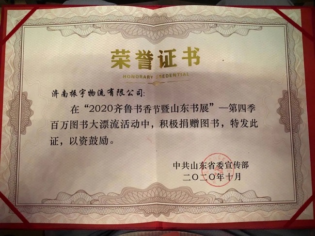 振宇物流此次積極主動參與“2020年齊魯書香節暨山東書展-第四季百萬圖書大漂流”活動,只為讓每一位鄉村孩子都能讀上一本完好的書,努力承擔書籍裝卸及運輸,將這些書籍送往東明縣沙窩鎮姜屯小學。