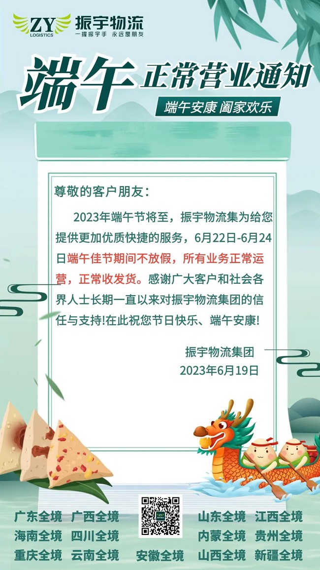 振宇物流集團丨端午正常營業通知