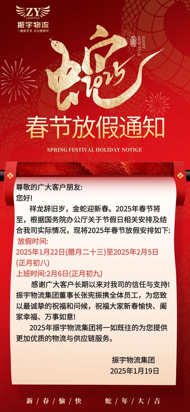 振宇物流集團丨2025年春節放假通知