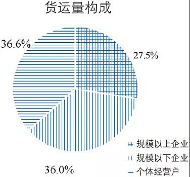 2019年9月規(guī)模以上企業(yè)、規(guī)模以下企業(yè)、個體戶分別完成貨運量8.75、11.44、11.63億噸,占比為27.5%、36.0%、36.6%;貨物周轉(zhuǎn)量2125.26、1637.20、1865.62億噸公里,占比為37.8%、29.1%、33.1%;平均運距分別為243、143、160公里。