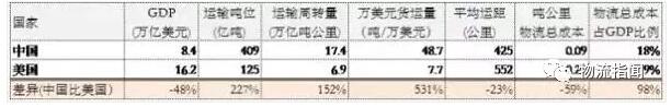 從這個指標來看,美國的物流成本遠遠高于中國。